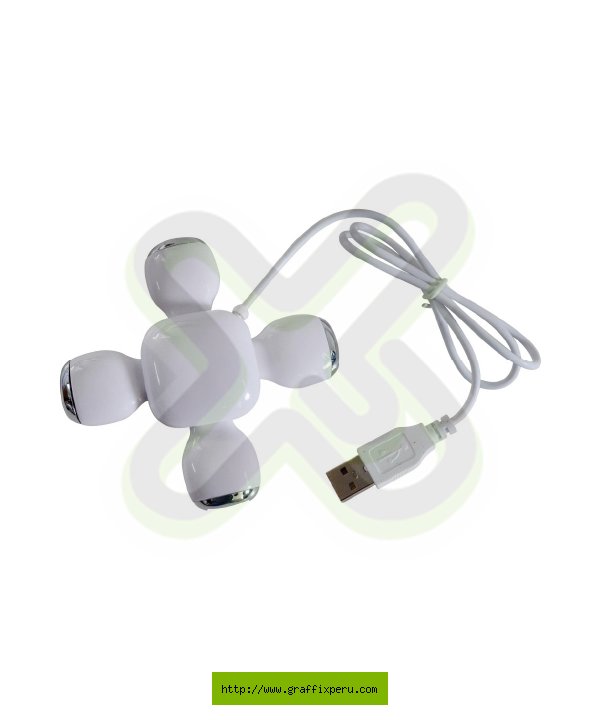 Hub de 4 entradas USB, color blanco. Medidas 5x5x4.5cm. Presentación: Cajita blanca.