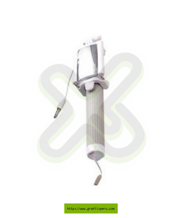 Color: blanco con plomo/ Selfie stick con boton para toma incorporado en el mango de silicona. Viene con cable de conxion para el celular.Extencion total: 75 cm