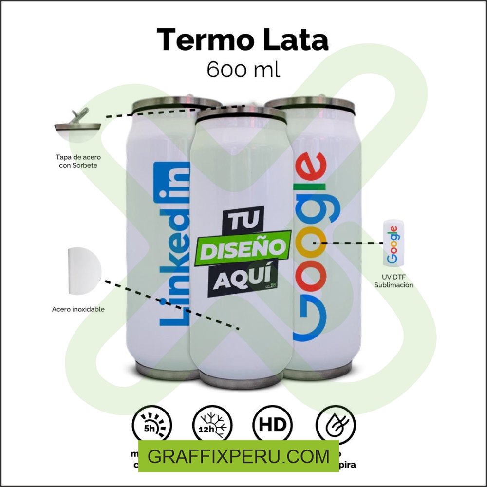 Termolata de 600 ml 100% personalizables desde s/ 0.96 adicional por c/u.Tipo de impresión: sublimado.Mantiene temperaturas frías y calientes por 12 horas.