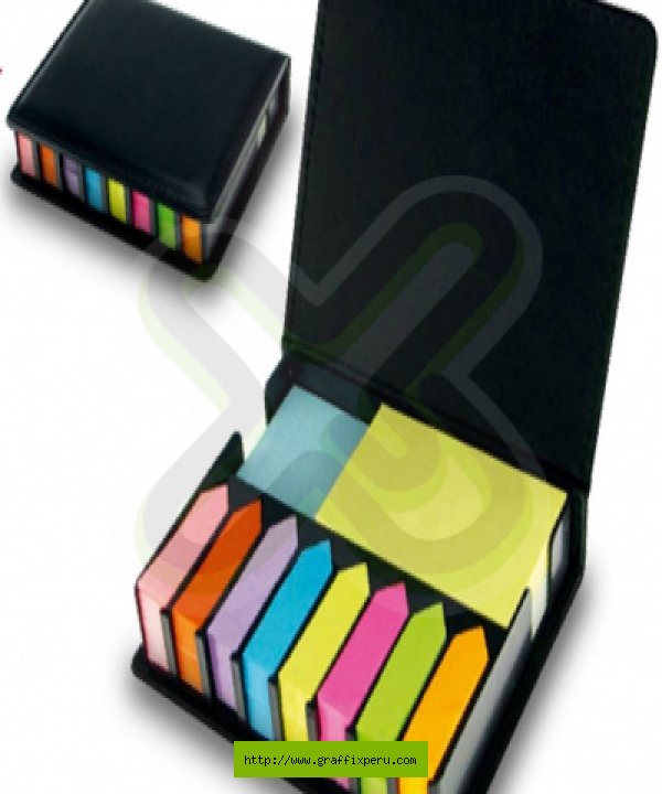 Material: de Biocuero,incluye Porta taco,Calendario con señaladores y 8 Post- it de colores en forma de flecha y 2 en rectángulo vertical